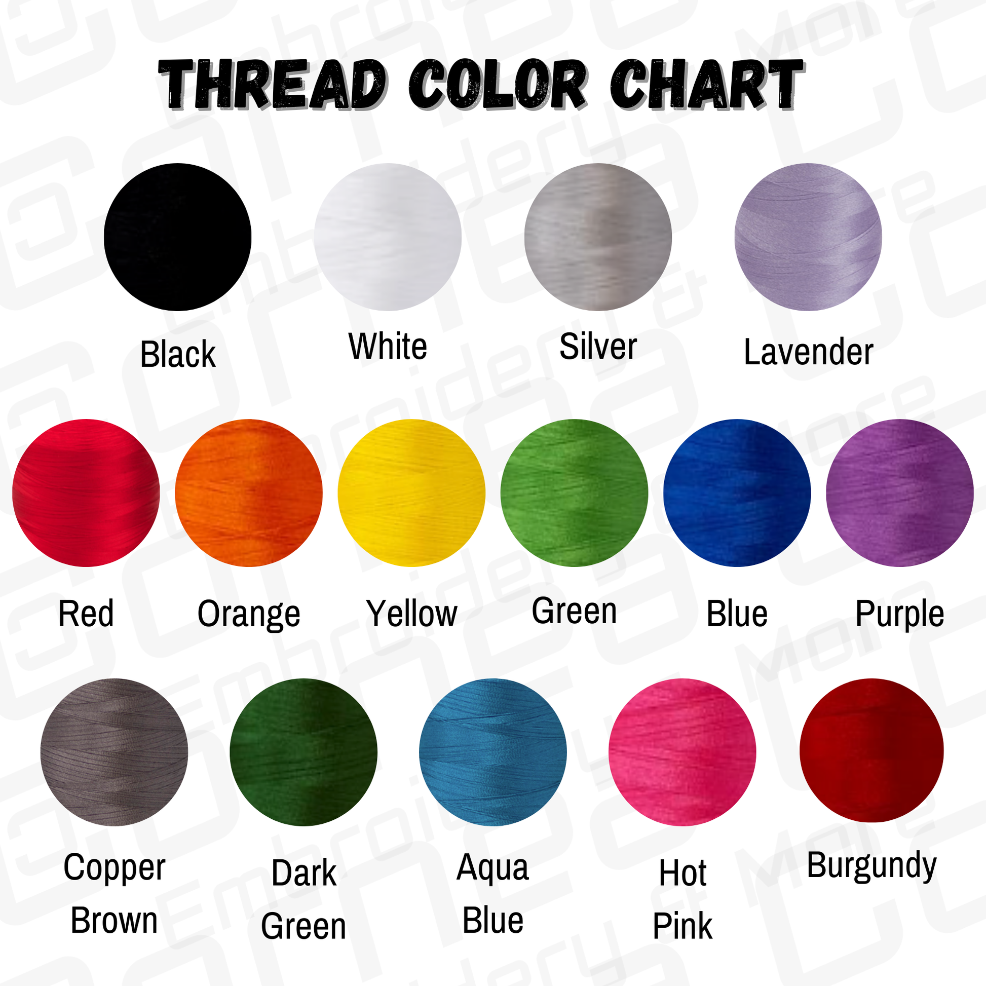 - Limit of 6 thread colors per design for optimal clarity and detail.